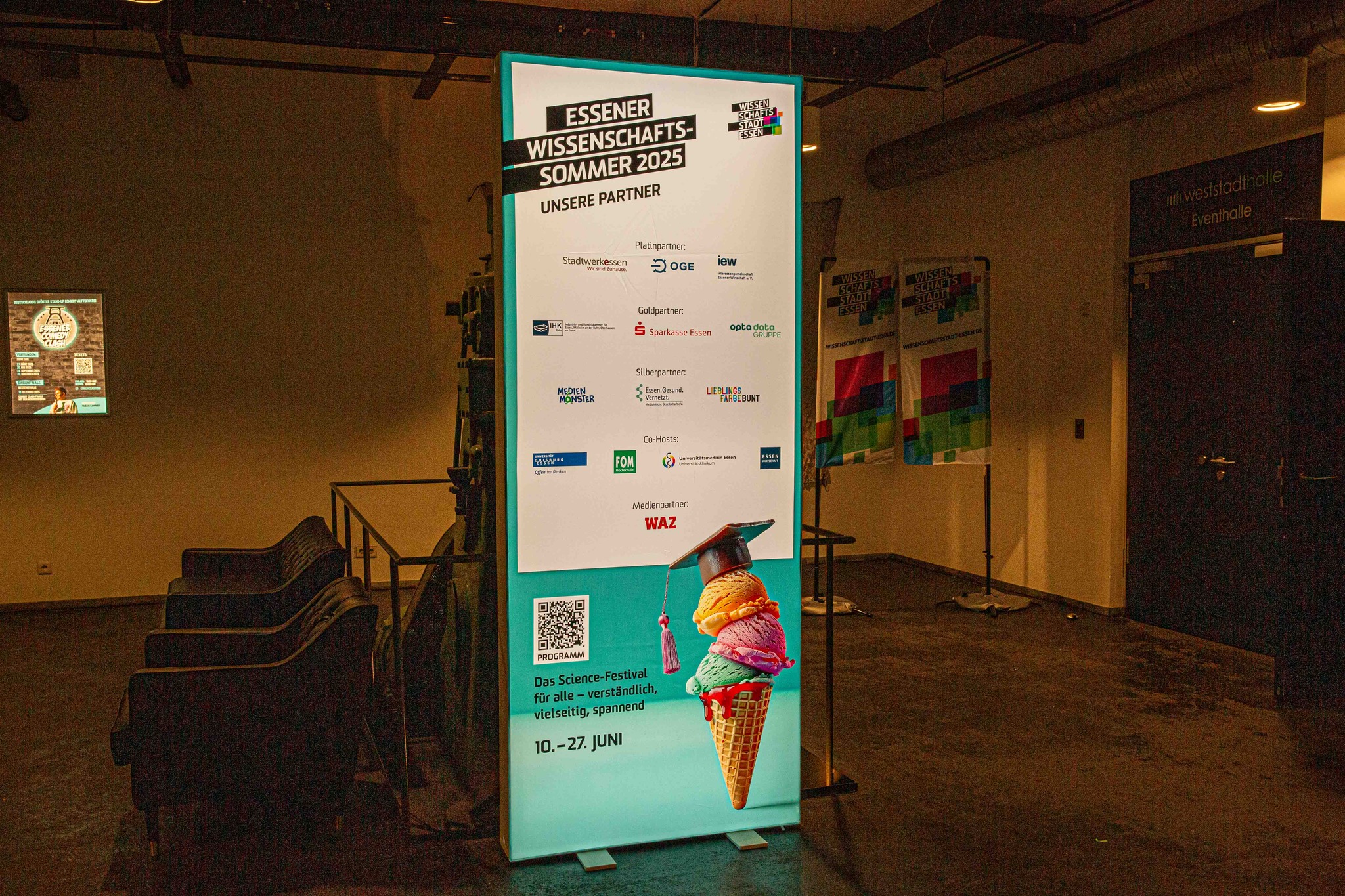 Ein herzlicher Dank gilt allen, die diesen Abend möglich gemacht haben: der Agentur Science & Stories, dem großartigen Moderator Rainer Holl, dem Team der Weststadthalle Essen, dem Sicherheitsdienst Kollektiv Sicherheit – und natürlich den fünf „Slammies“, die mit Wissen und Witz für einen unvergesslichen Abend sorgten: